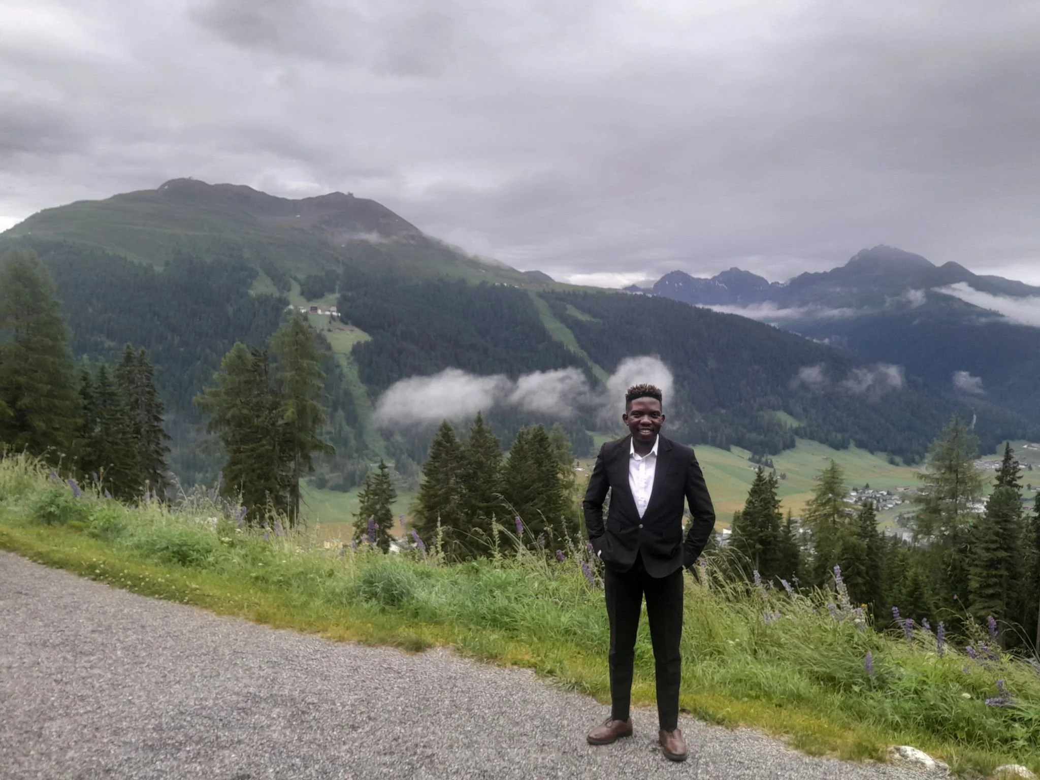 Botswana Clinical Coordinator, Dr. Mufudzi Chihambakwe, stands amidst the Swiss Alps during the International Back and Neck Pain Research Forum this June.